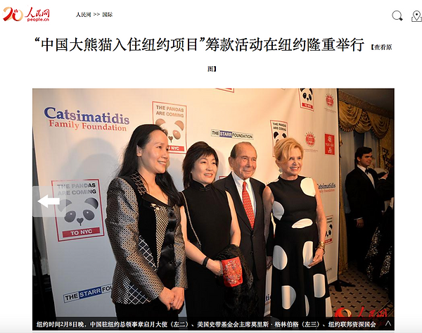 Maurice R. Greenberg, John A. Catsimatidis, Yue-Sai Kan, Congresswoman Carolyn Maloney and Elizabeth B. Wang spearheaded "The Pandas Are Coming to NYC" project. This exciting endeavor will bringing much enjoyment and economic benefits to New York City.